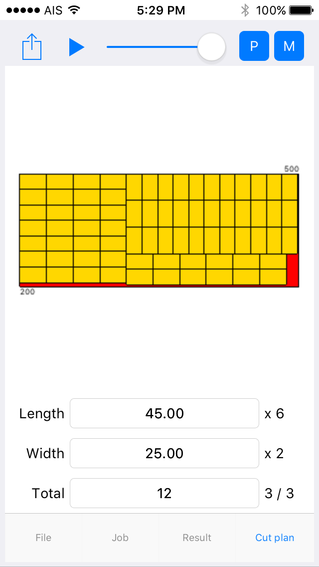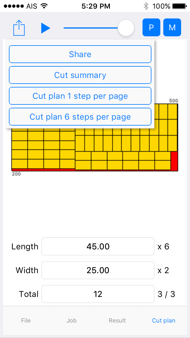 Cutting result with list of most cutting efficiency (can choose).